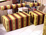 Egyedi formájú és méretű kárpitozott bútorok készítése rendezvény- és kiállításszervező cégek számára hazai- és külföldi kiállítások standjainak professzionális berendezése céljából.